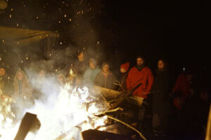 Die Sauna läuft bis spät in die Nacht. In wechselnden Runden wird geschwitzt, abgekühlt und weitergeredet. Alte Erinnerungen tauchen auf, neue Begegnungen entstehen. Am Feuer halten ein paar wenige bis weit nach Mitternacht durch, während die meisten müde, zufrieden und durchgewärmt aufbrechen.