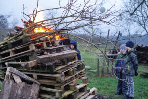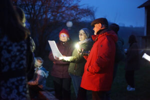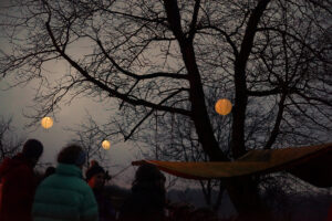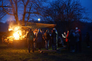 Am 21. Dezember kommen wir auf dem Hof zusammen – so viele wie selten zuvor zu einer Wintersonnwendfeier. Rund 60 Menschen finden an diesem dunklen, kalten Abend den Weg zu uns. Die längste Nacht des Jahres zeigt sich von ihrer geselligen Seite: Feuer, Wärme, Gespräche und gemeinsames Innehalten prägen den Abend.